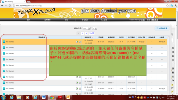 3)由於你的活動紀錄是新的,並未做任何審視與名稱賦予,將會如圖示,活動名稱都叫做(no name),(no name)也就是提醒你去做相關的活動紀錄檢視和給名稱。