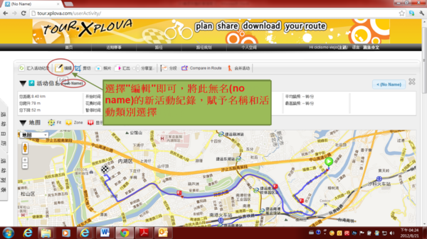 4)選擇"編輯"即可,將此無名(no name)的新活動紀錄,賦予名稱和活動類別選擇