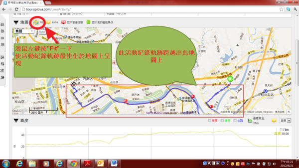 7.2.2) 點擊"Fit" 後可使活動紀錄軌跡最佳化在地圖上呈現,如下圖示
