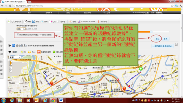 再點擊“確認”後,將會保留原有的活動紀錄並產生另一個新的活動紀錄數據;