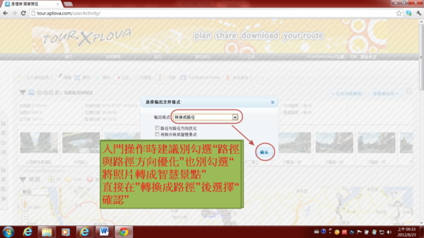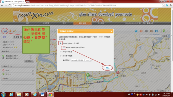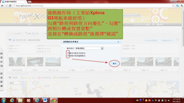 3.4) 第四種匯出為 “轉換成路徑”,也就是直接將運動的活動紀錄變成路徑。此路徑可供比賽用,也可以當作Xplova G3導航用,也能給台灣各種單車協會或是政府體育局處或水利單位從事單車活動認證使用。