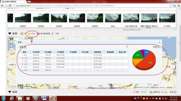 6) 你的朋友也可以看到你的活動紀錄的餅圖分析資訊,點選“i”(Zone)後,即可檢視