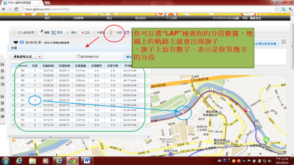 2) 或是將LAP出現的表格最佳拉大後,調整你要看軌跡標示點分段