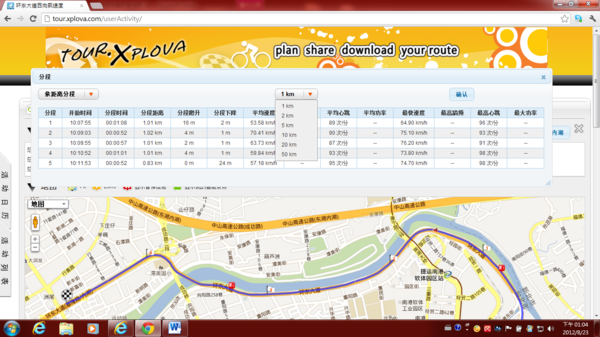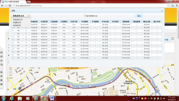 1)你可以選“LAP”檢視你的分段數據,地圖上的軌跡上就會出現旗子