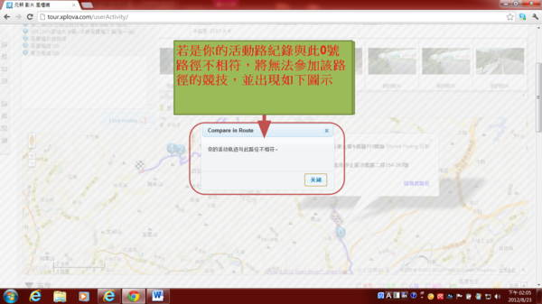 2.4.2) 若是你的活動路紀錄與此0號路徑不相符,將無法參加該路徑的競技,並出現如下圖示