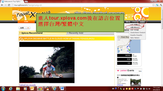 3) 進入tour.xplova.com後在語言位置選擇台灣/繁體中文