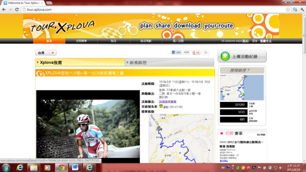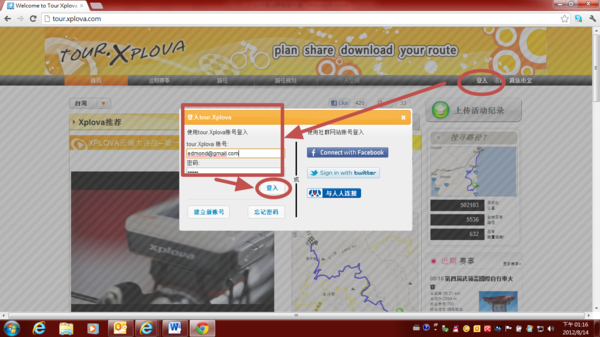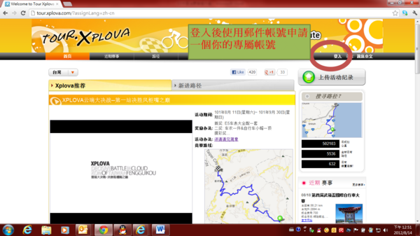 2) 用谷歌瀏覽器(Google Chrome)開啟tour.xplova.com