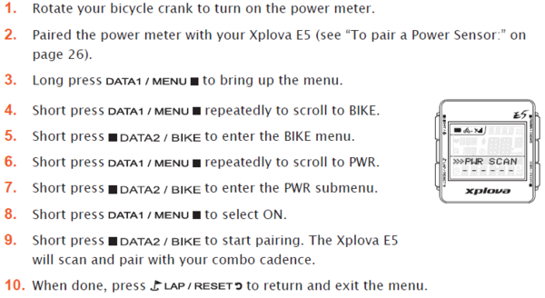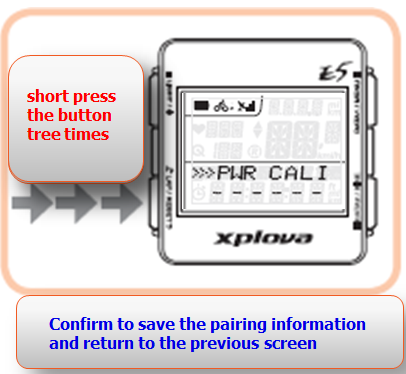 After Power Meter complete to pair with E5, you have to short press the button “LAP/RESET” twice. Confirm to save the pairing information and return to the previous screen.