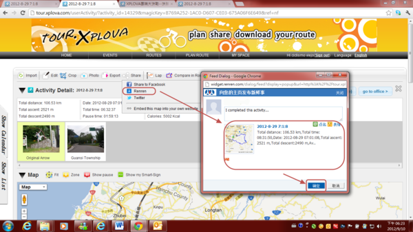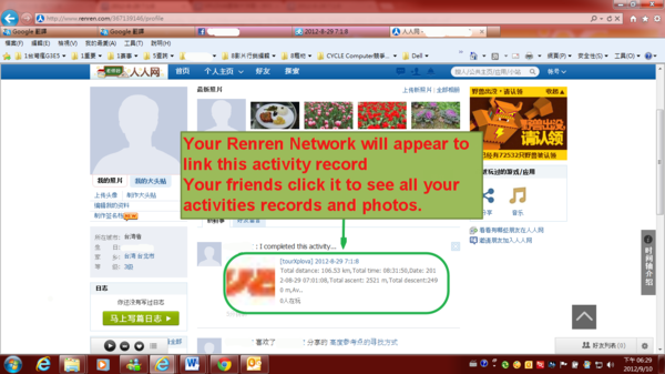 2) Your Renren Network will appear to link this activity record