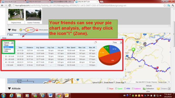 8) Of course, your friends can see your altitude chart, speed chart, cadence chart, heart rate chart, power chart and temperature chart etc...