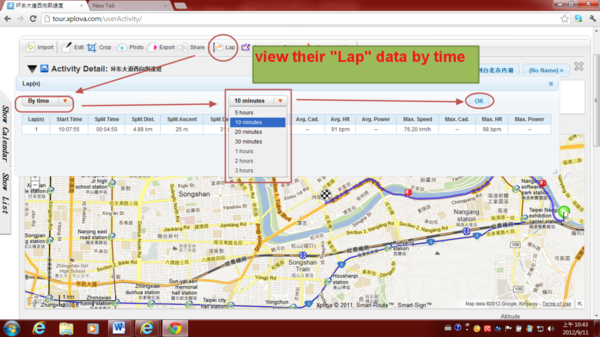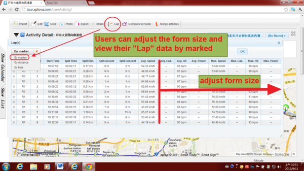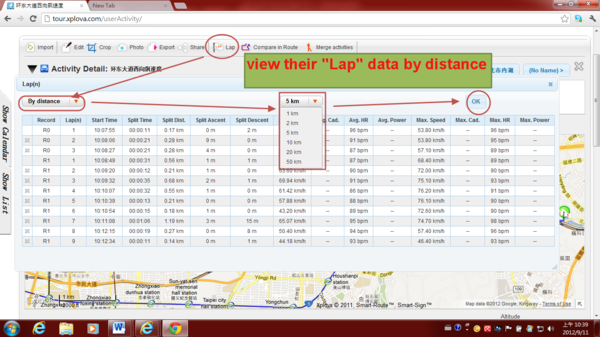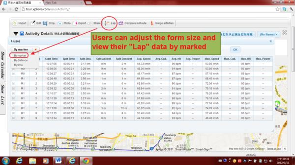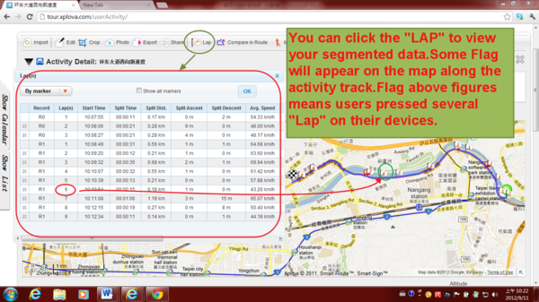 1) You can click the "LAP" to view your segmented data.Some Flag will appear on the map along the activity track.Flag above figures means users pressed several "Lap" on their devices.