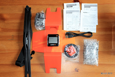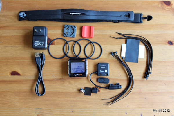 歐陽店長說,Xplova E5 在台灣都是全配,為得就是要讓台灣使用者有尊貴的禮遇。 ^|||...XD。 包含有Combo Sensor 轉速和速度無線感測器、和心跳帶,兩個都是透過ANT+ 低功率無線傳送到 E5本機。俺的其中一部車一年半前裝了另外一套ANT+ 和有地圖的車錶,到現在感測器都還有電,但是依榮戰士建議的,改天還是給換顆新電池,就像車子時間到要換機油一樣的道理。
