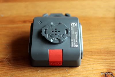 機器背面看起來,蜂鳴器應該是在中央,而左上角的孔是高度氣壓計,紅色軟蓋打開是USB插槽,用來充電或連接電腦後可上傳運動資料到Tour.Xplova雲端