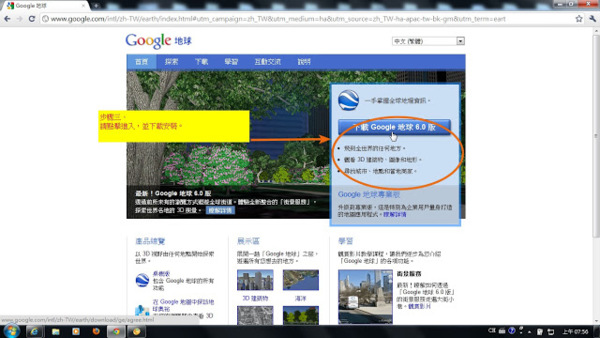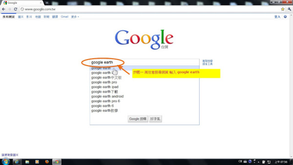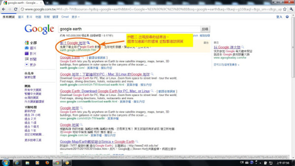 步驟一、先在搜尋網頁,輸入google earth 並搜尋
