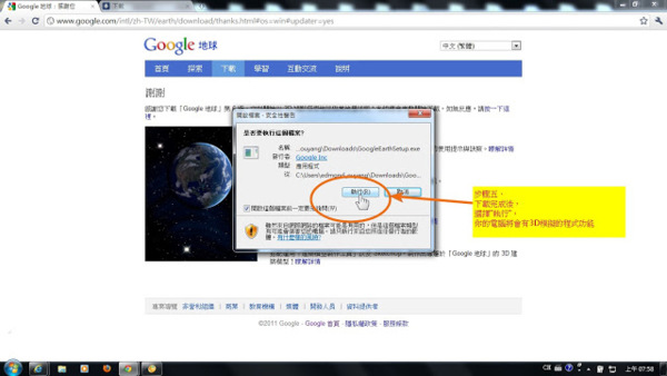 步驟五、下載完成後,選擇"執行",你的電腦將會有3D模擬的程式功能。