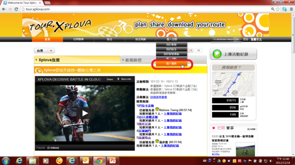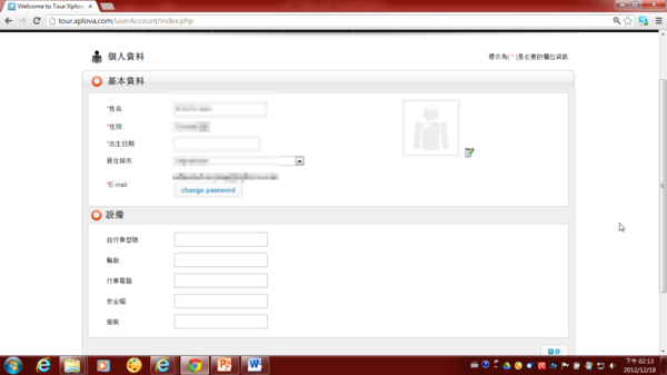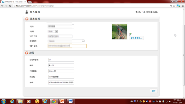 當你完成登入後與填完個人檔案訊息後,將是合法使用者,恭喜你!! 將可快樂地使用這tour.Xplova.com雲端軟體。