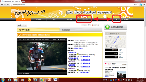 1)用谷歌瀏覽器(Google Chrome)開啟tour.xplova.com