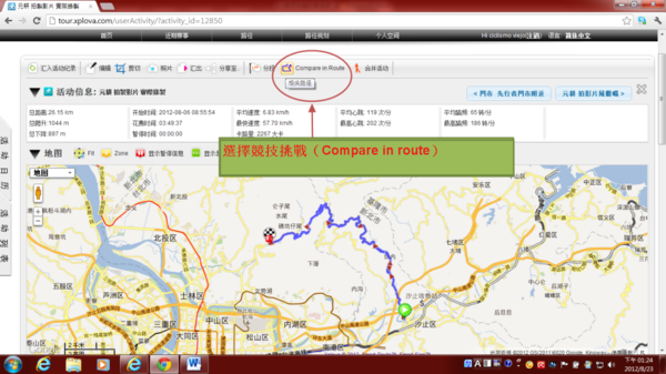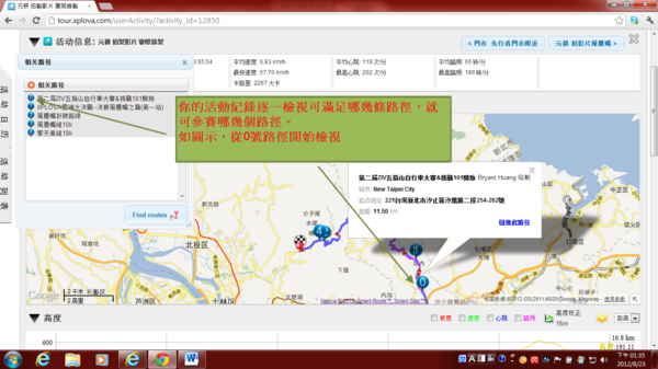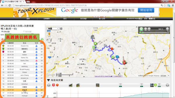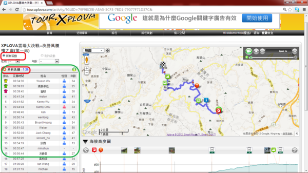 2.5.3) 你的活動紀錄就會在該競賽路徑上青史留名,如本範例目前排名第一