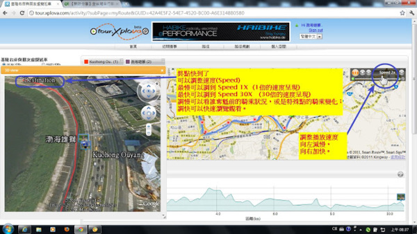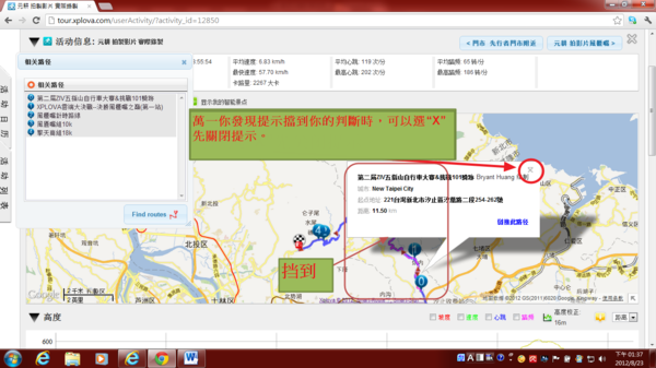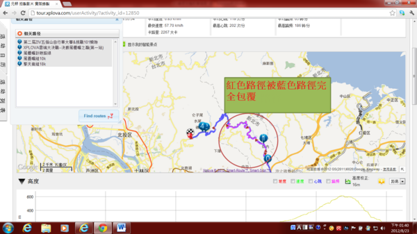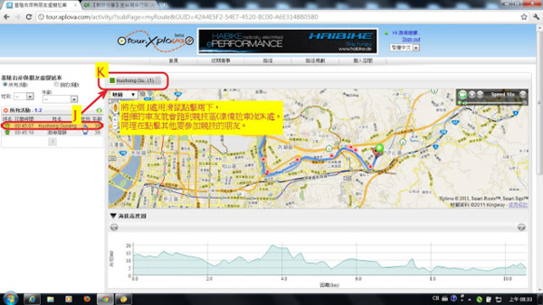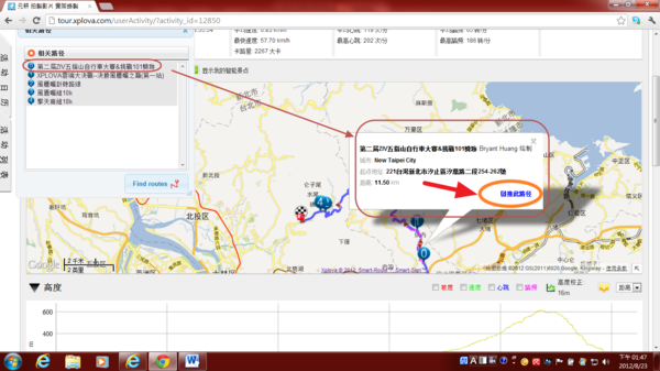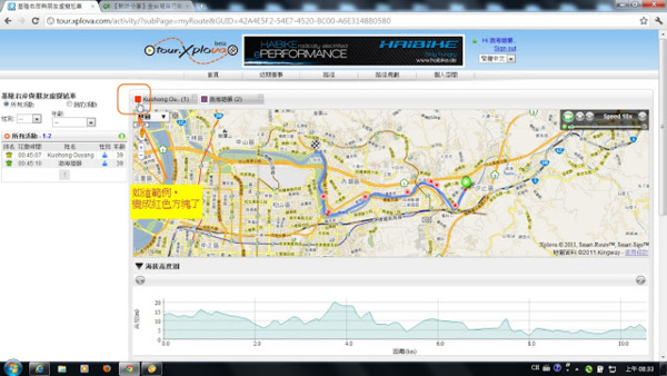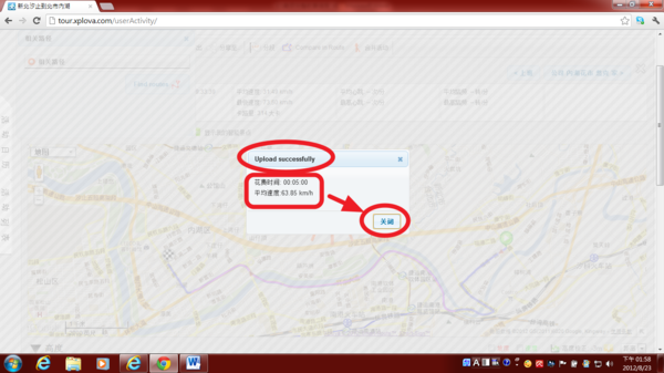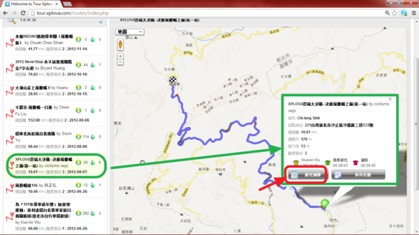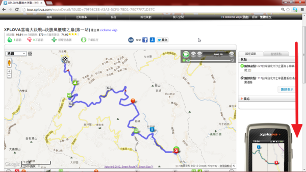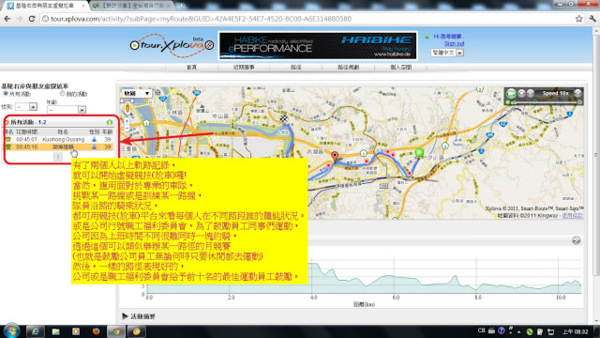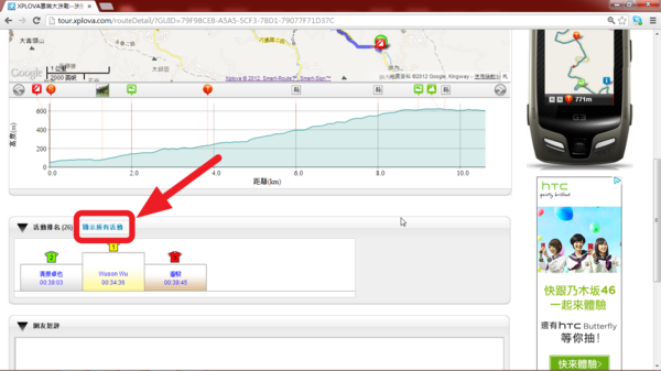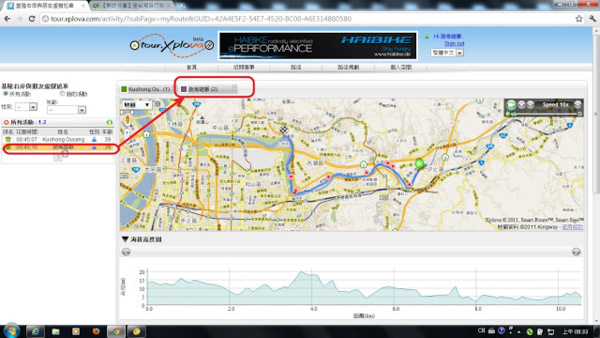 "開啟"後,成功上傳後,你的成績就會出現tour.Xplova該路徑的英雄排行榜內。
