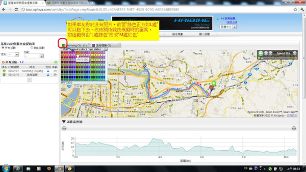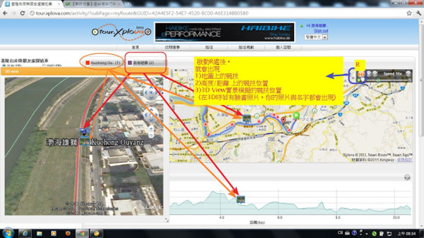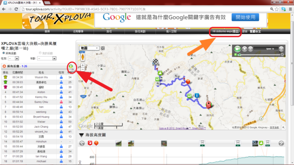 如圖 選擇紅色箭頭處,但很重要的要上傳活動紀錄,要先如橘色箭頭指示,必須先將你的帳號登入。