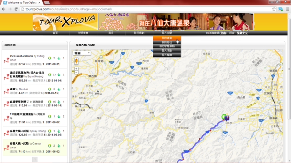 若是瘋友都將活動紀錄也都上傳在相關路徑內,其實觀看好友們或是參賽的所有朋友,都能藉由雲端軟體這個 我的書籤 發現朋友們的歷史盡在這相關的200k 300K 500K 600K, 1000K路徑裡。