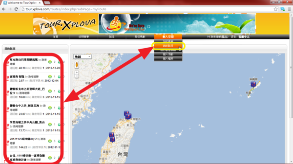 顧名思義我的路徑內的路徑都是您自己在tour.Xplova雲端軟體編輯的。