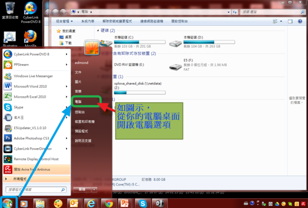 2.3)如圖示,從你的電腦桌面開啟電腦選項