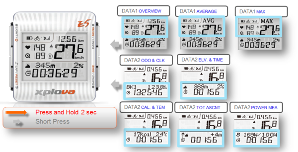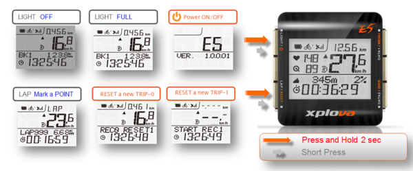 E5 will automatically record your activities after turn on E5 power. You just join to ride happily and enjoy the easy-to-understand cycle-computer hardware interface. Main bike-riding data can clearly appears on the screen .The end of the ride, as long as the shutdown E5, it will be automatically saved your activity and turn off the power. With Xplova Smart Dynamic Logging Technology, Xplova E5 automatically tracks speed, distance, location, elevation, slope using a high sensitivity GPS and barometer.