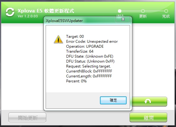 [Xplova E5碼錶]依正常程序更新xplova E5碼表, 無法順利更新韌體,且更新未完成就出現錯誤訊息,怎辦?