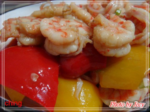 甜椒與蝦仁用和風醬汁涼拌