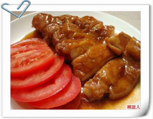 調些玉米粉水收乾湯汁. 番茄擺盤.雞腿淋些照燒醬汁即可!