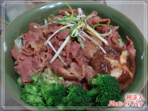 材料: 梅花火鍋肉片.生香菇.萵苣絲.綠花耶菜.薑泥