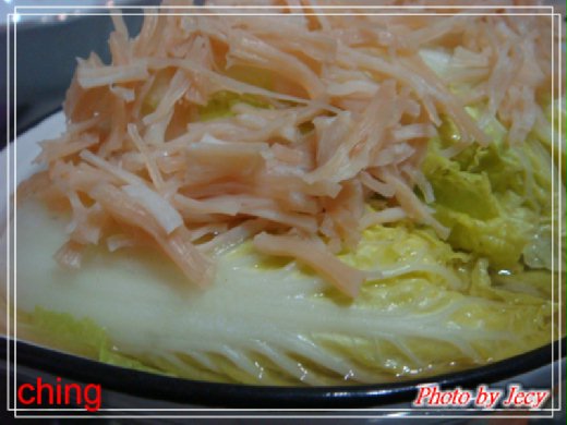材料:干貝.娃娃菜.米酒.干貝粉