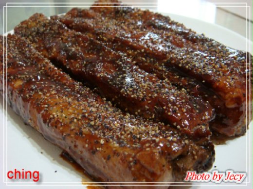 做法:將肋排抹上蠔油.放入電鍋蒸熟