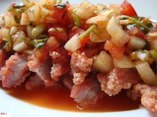 材料:現成紅麴排骨肉.香菜.洋蔥.牛番茄.蒜末