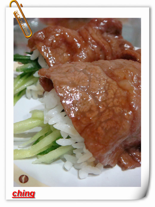 白飯面捲入牛肉即可成型!