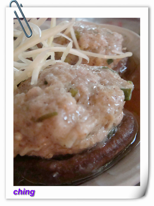 材料:新鮮香菇.絞肉.蔥.蛋白.薑絲