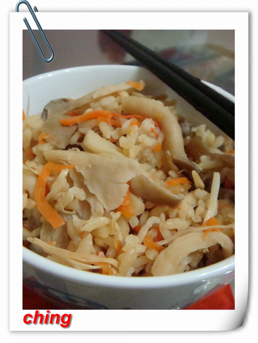 比例要剛好跟你要煮的米飯水一樣.再加入菇類