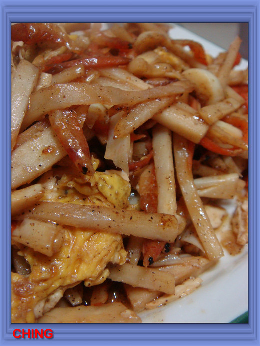 下散蛋胡椒粉.少許醬油膏.櫻花蝦拌炒即可!