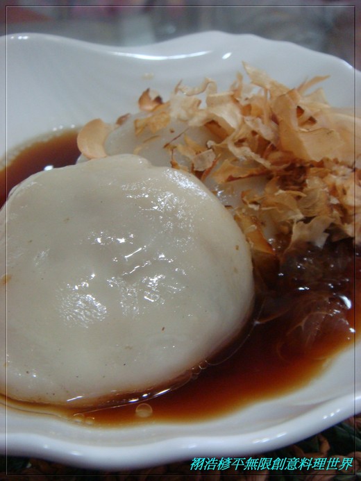 這次改變以日式吃法.以少許湯汁沾柴魚片吃