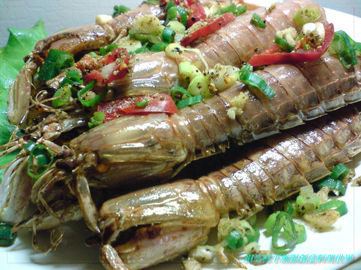 材料:活體螳螂蝦.蒜末.辣椒末.蔥花