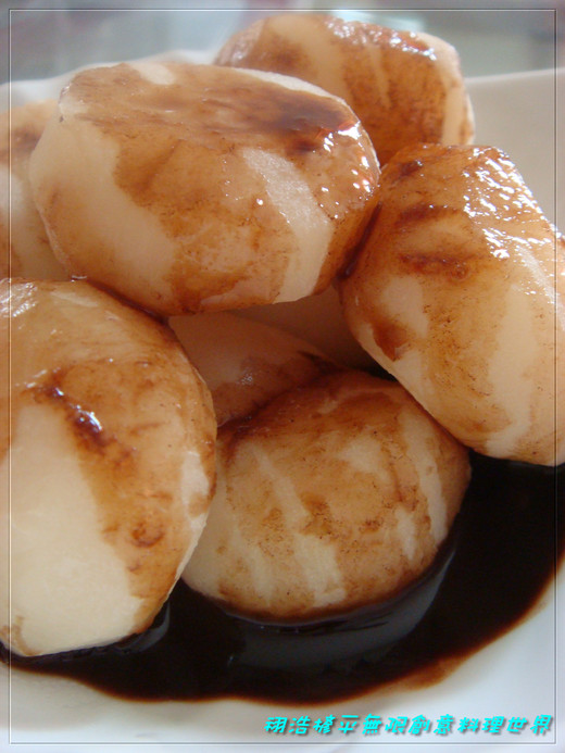 去皮水煮後的荸薺很甜.淋上醬油膏就粉好吃了