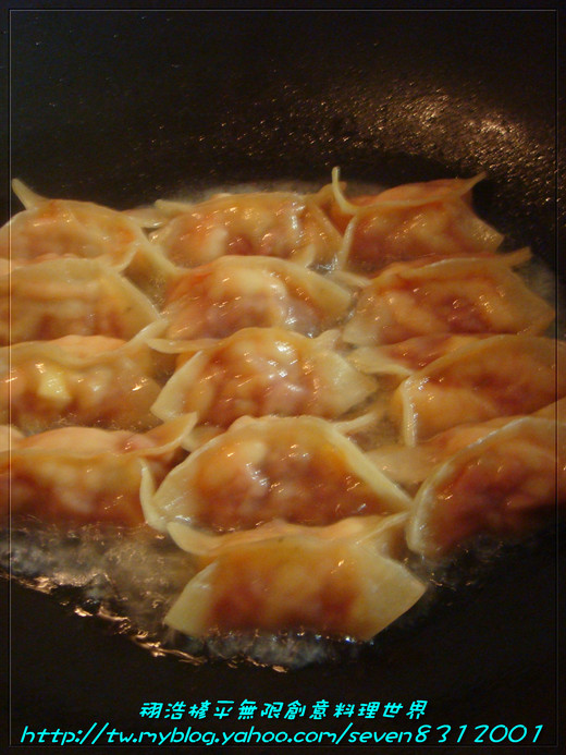 待水被餛飩皮完全吸收後.聲音又回歸油煎聲音