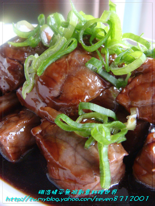續下醬汁與少許水燒至肉熟,灑上蔥花即可!