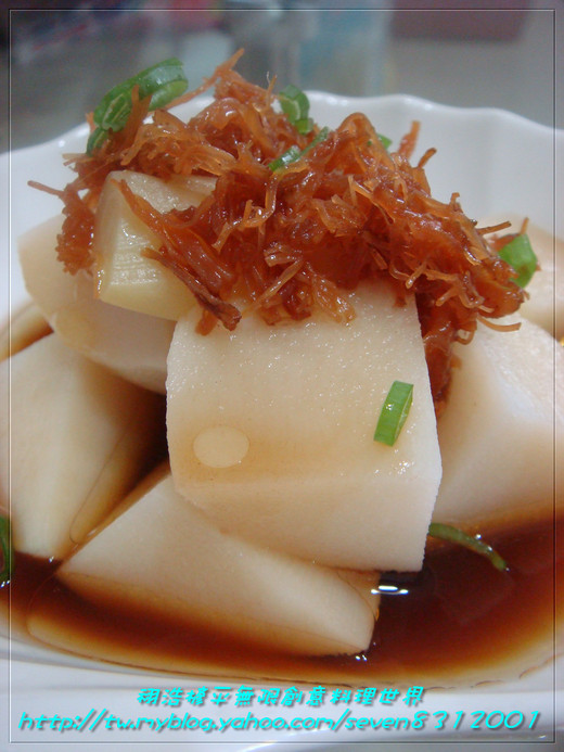 放上xo醬提鮮.蔥綠點綴即完成簡單涼筍吃法!