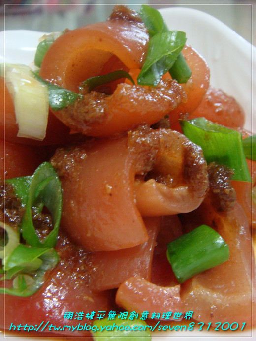 滷好起鍋冷卻切塊灑上蔥花調和沙茶醬少許香油