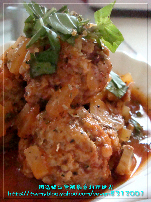 與義式香料.煨煮煮至丸子熟透即可!