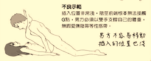 但當然也要小心一些事倍功半的NG例子!如果角度沒有調好,男生把重心放在支撐身體的手上,反而錯過刺激點: