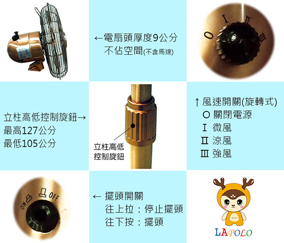 看更多LAPOLO藍普諾-16吋古銅立扇(LA-40M)1台"