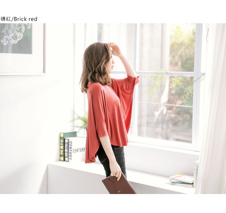心動不如馬上行動,趕緊到OB嚴選購買0605新品 素色飛鼠袖弧襬剪裁圓領寬鬆上衣.2色